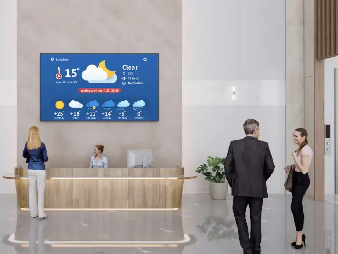 - Écrans d'accueil : Modernisez vos réceptions en informant vos clients dès leur arrivée