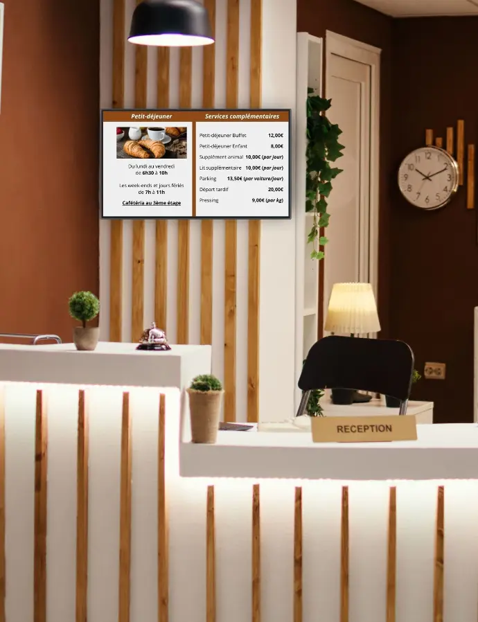 Dans votre hôtel, nos solutions d'affichage dynamique, installez :